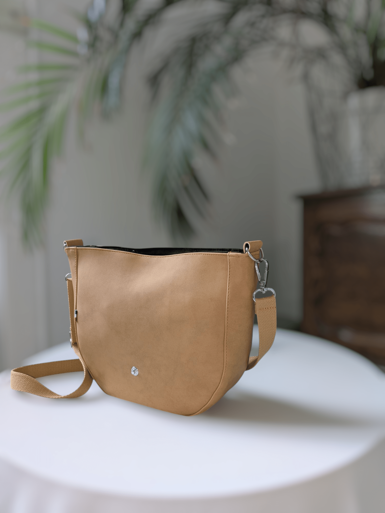 Votre besace à rabat mini est également équipée d’une lanière assortie en aspect suédine (sur crochet métalliques) et réglable facilement.