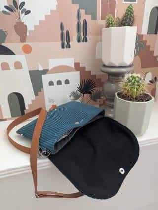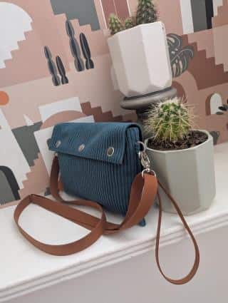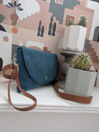 oui oui  , craquez sur notre modèle FaBul’E.sac Mini besace femme velours bleu canard  fabriquée dans notre atelier en Bretagne )