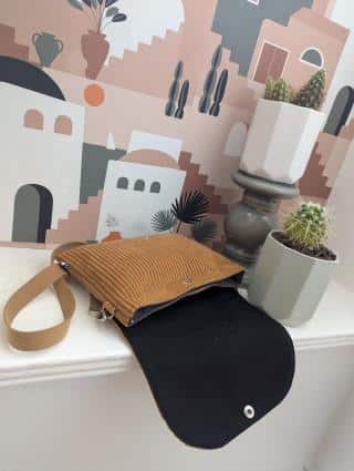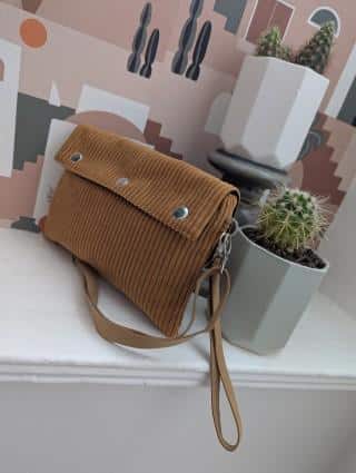 oui oui , craquez sur notre modèle FaBul’E.sac Mini pochette femme velours jaune fabriquée dans notre atelier en Bretagne )